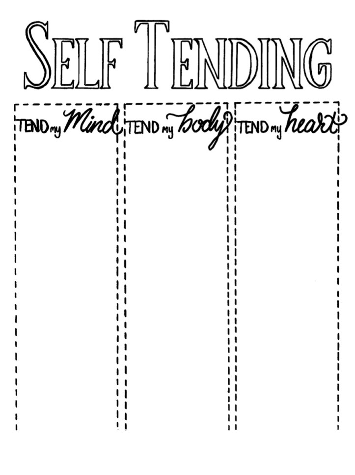 Use the self-tending sheet on our downloads page to have a reference sheet of caring for your mind, body and heart.