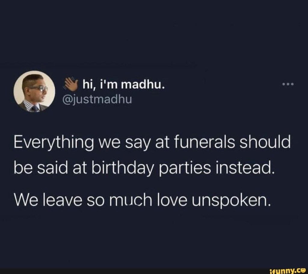 Maybe we need to all start saying what we would say at a funeral at a birthday party.